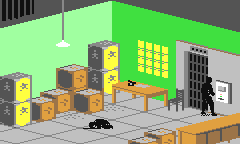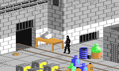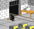 向东走,爬上梯子. 从西边得到卡. 东边走则可从房间里得到肉. 回来时不要待太长时间,否则会有bug 下梯子,继续向东.这里可跳可走. 这里必须要跳. 拿到汉堡. 走到这里,按图中方位跳过去. I到了实验室,往西走,把肉沾上毒药. 给狗吃掉.. 之后用卡进去.